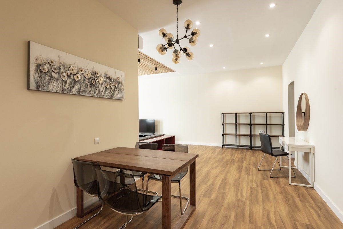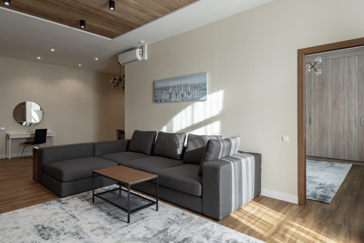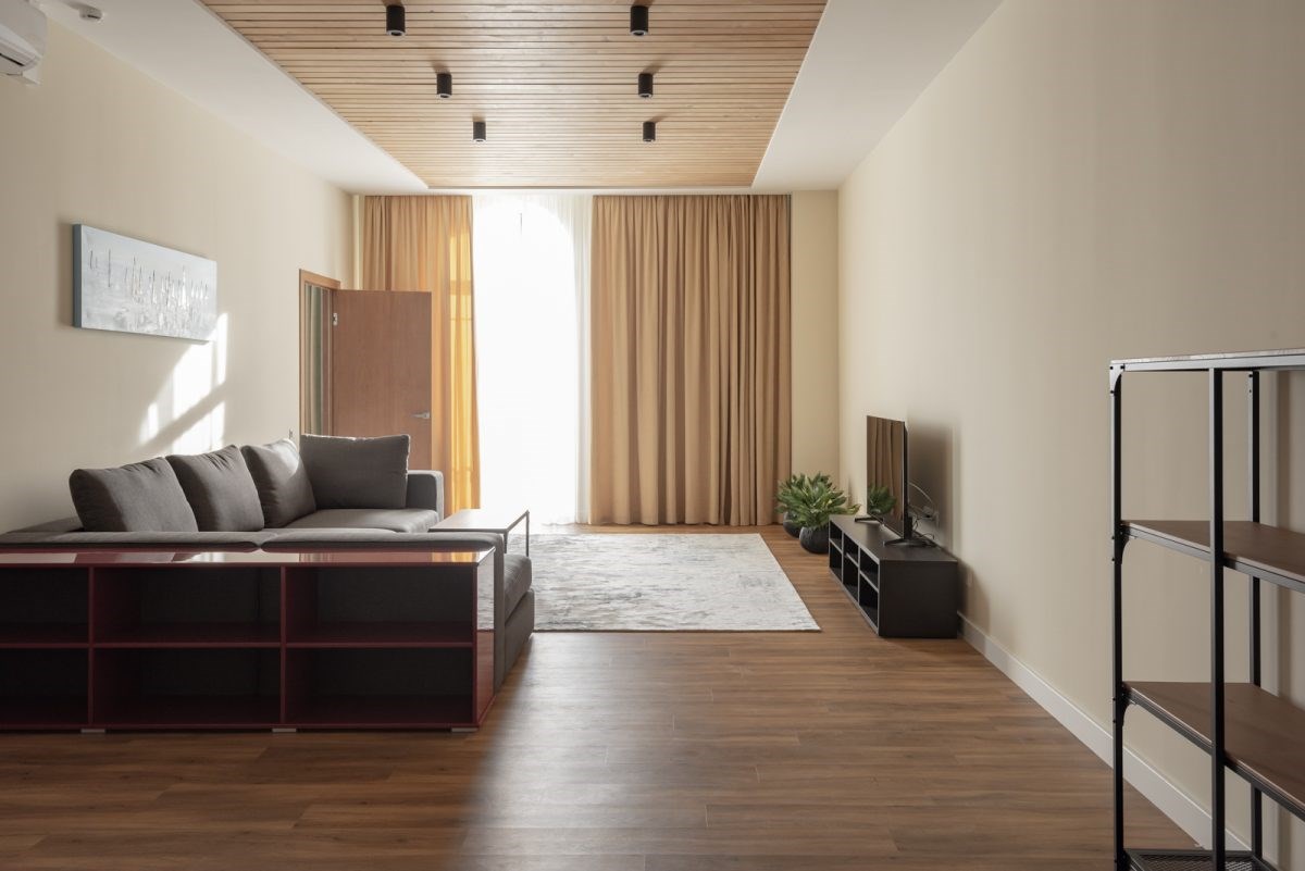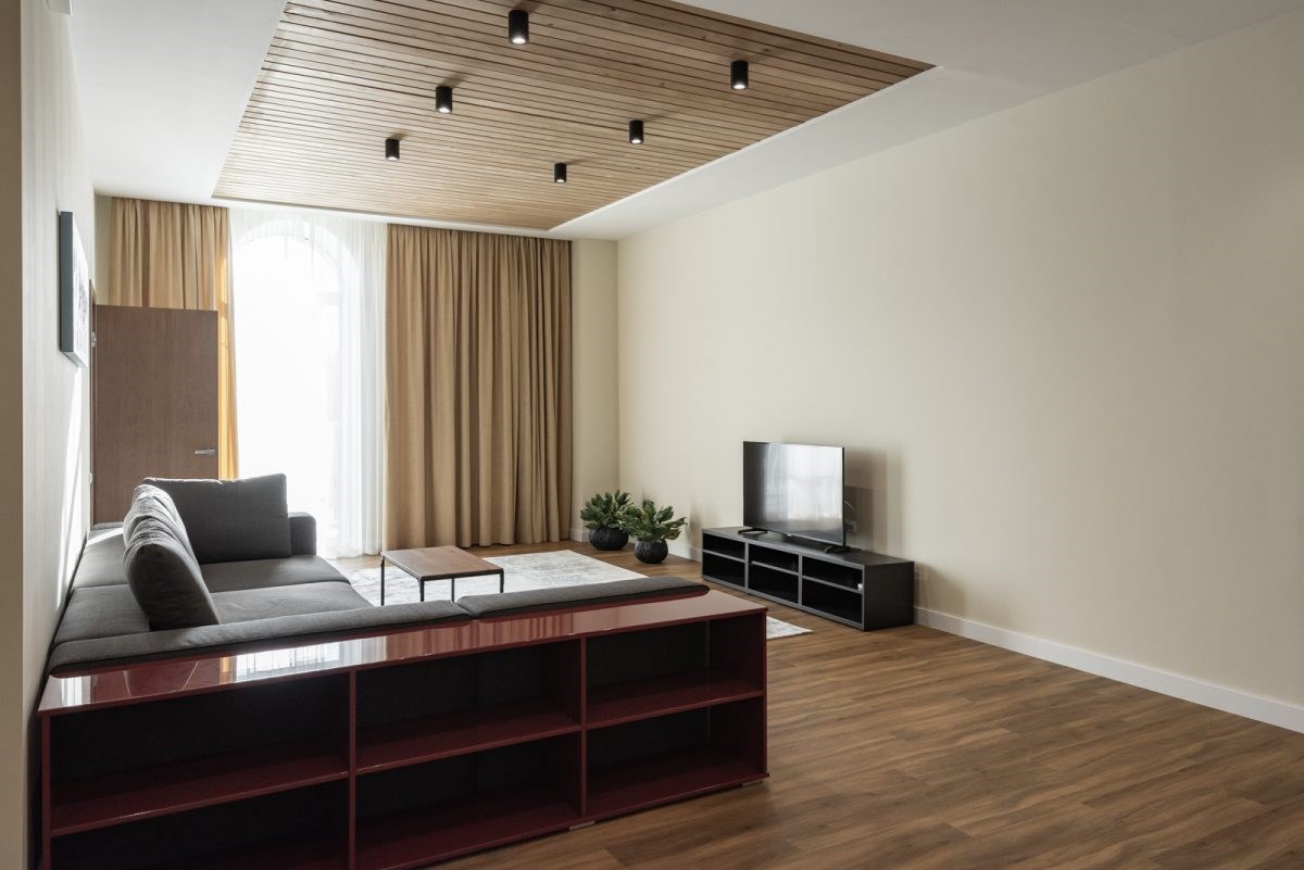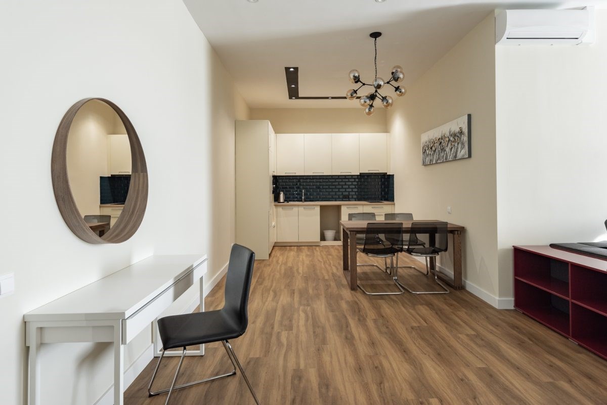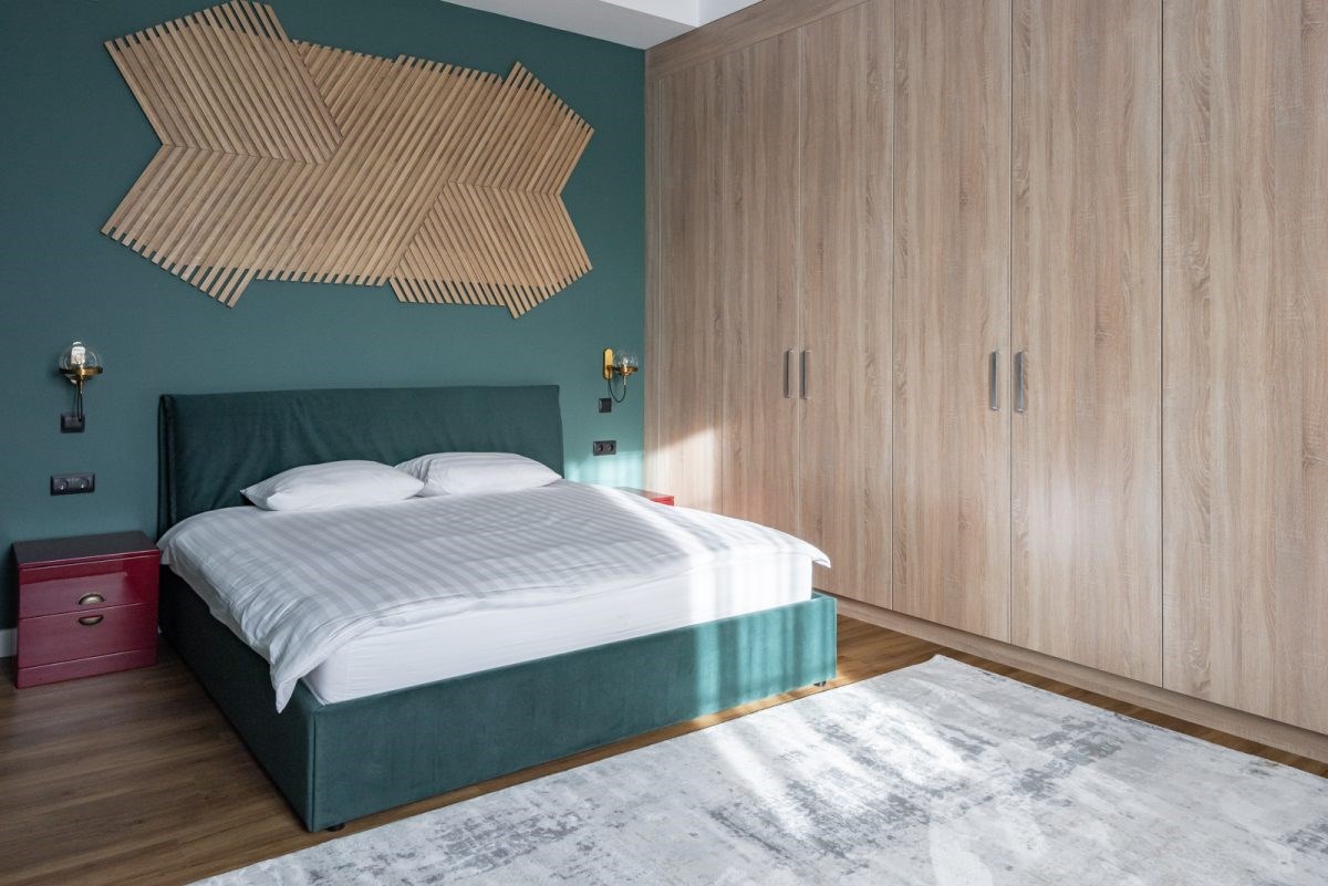 Двухкомнатный номер с кухней-гостиной и спальней . В номере есть двуспальная кровать и большой раскладной диван.