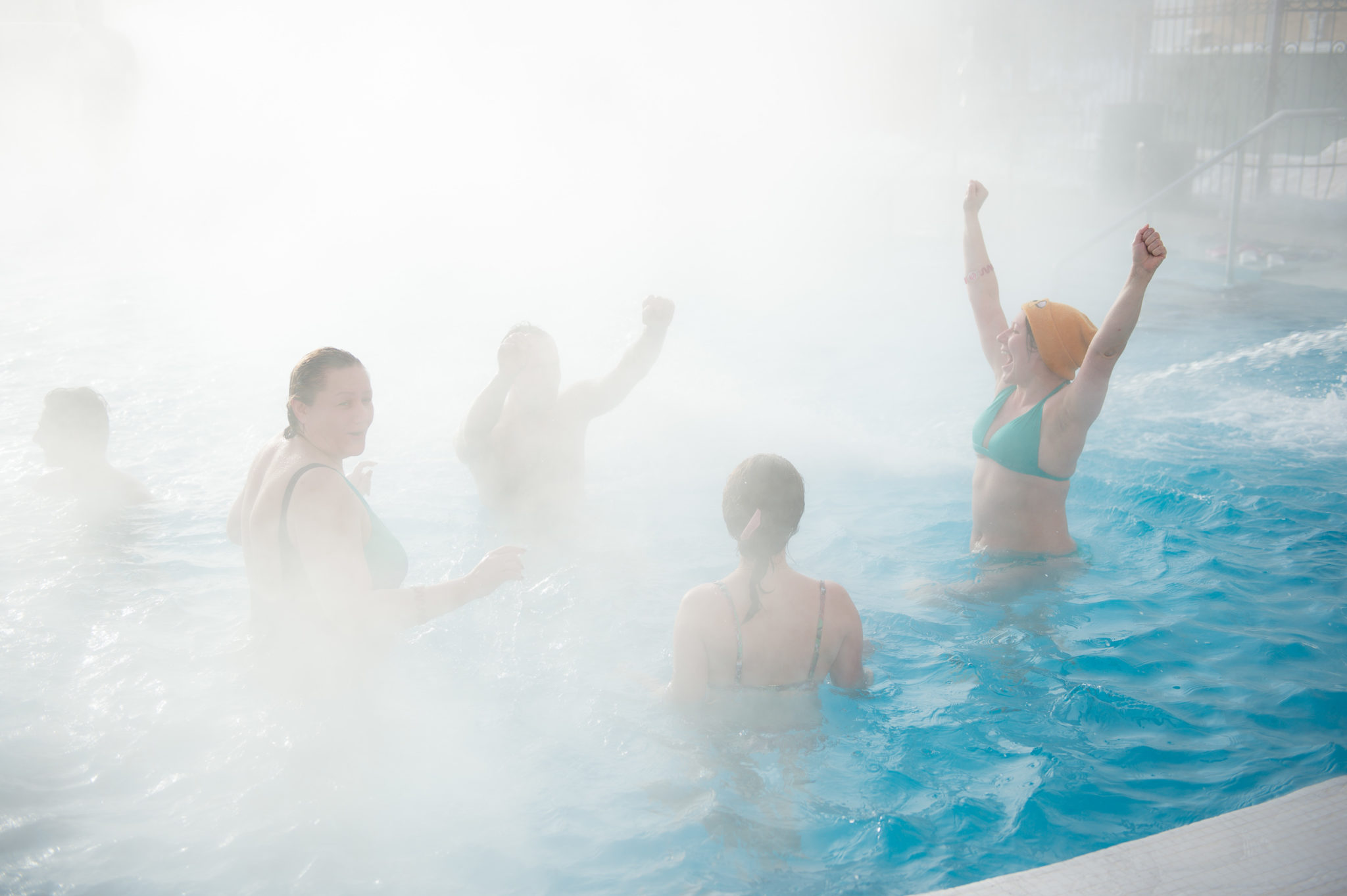 Зимняя ночь в термальном комплексе! Представьте только: купания в бассейнах в окружении густого пара и под ночным небом. Уличные гулянья и веселые катания на лыжах, тюбингах и коньках.