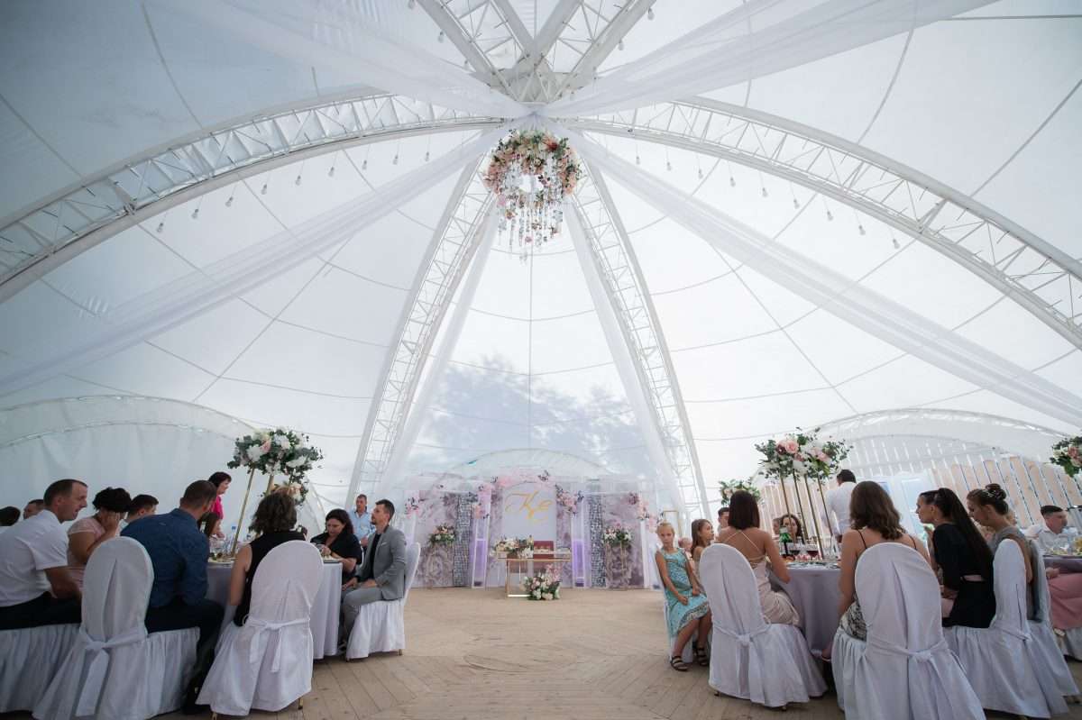 Большой купольный шатер — идеальное решение для больших банкетов и свадеб. Просторный и стильный, он создаёт уютную атмосферу и защищает от непогоды. Благодаря современному дизайну шатёр станет стильным дополнением вашего праздника.