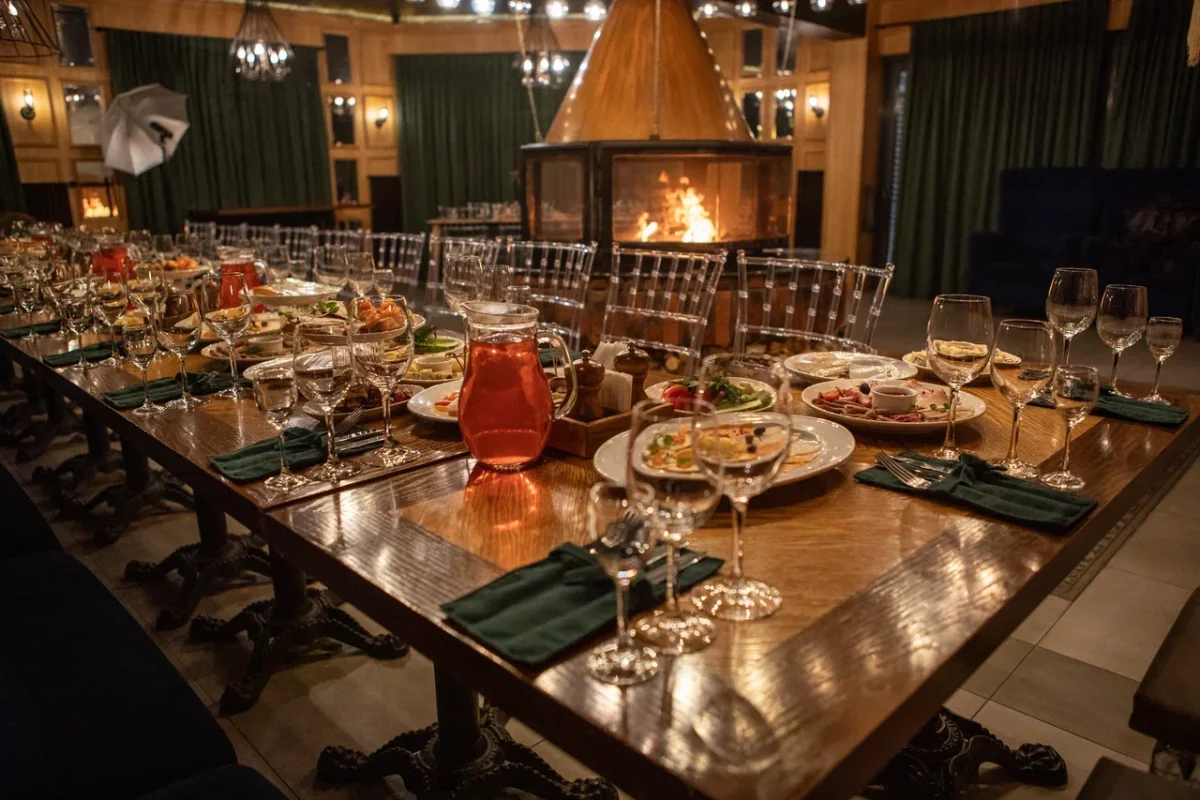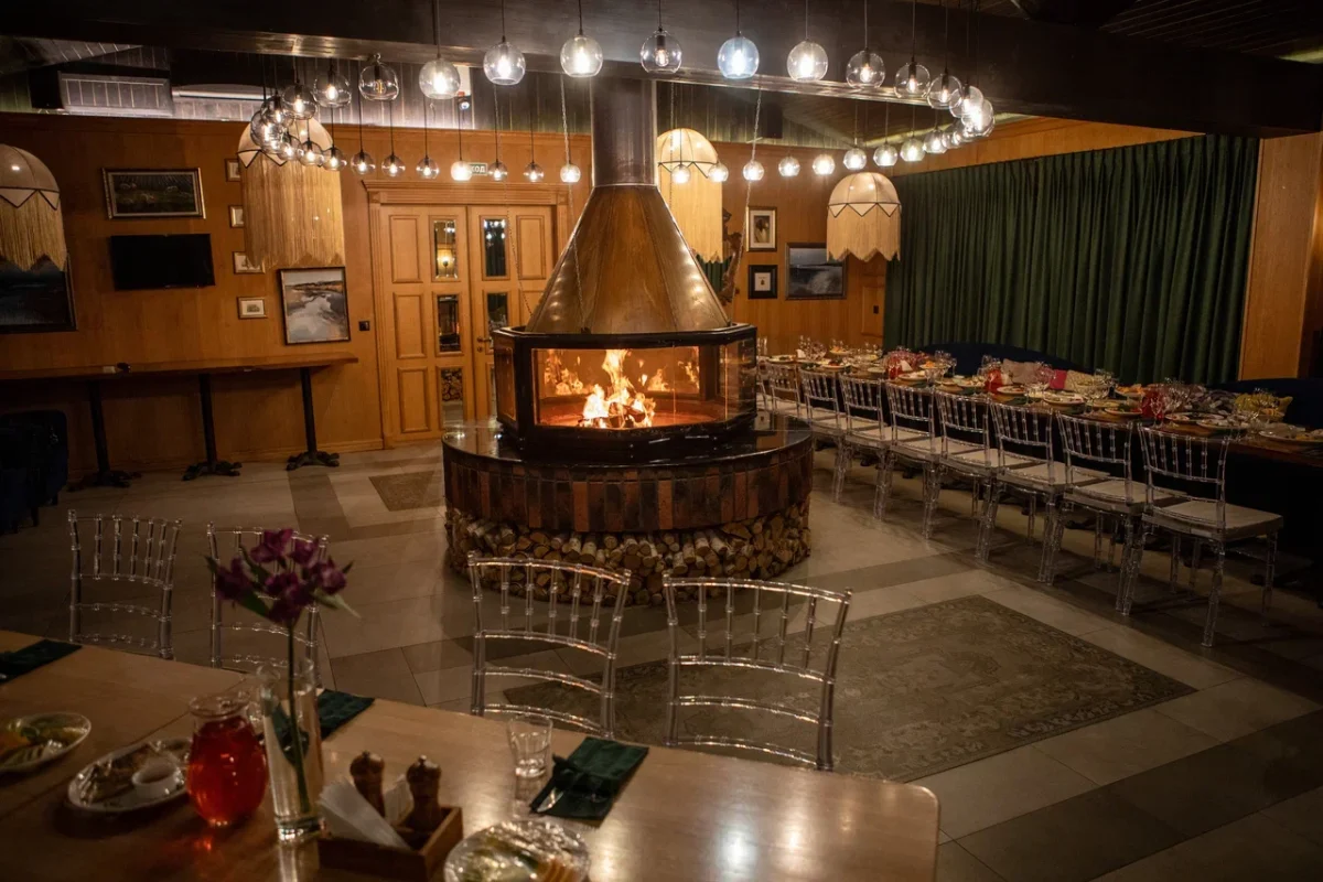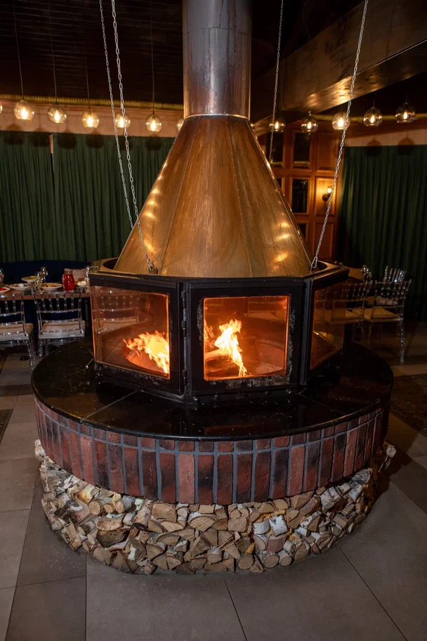 Тепло, стиль и атмосфера уюта создают идеальное место для отдыха или мероприятия в кругу ваших близких. Очаг с настоящим живым огнем станет настоящей изюминкой вашего праздника.